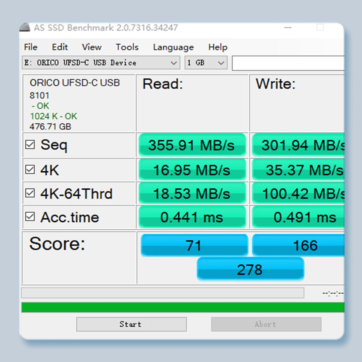 UFSD USB3.2 Gen1 Flash Drive Read 60GB file in the test environment of ORICO Laboratory, Transmission speed is stable