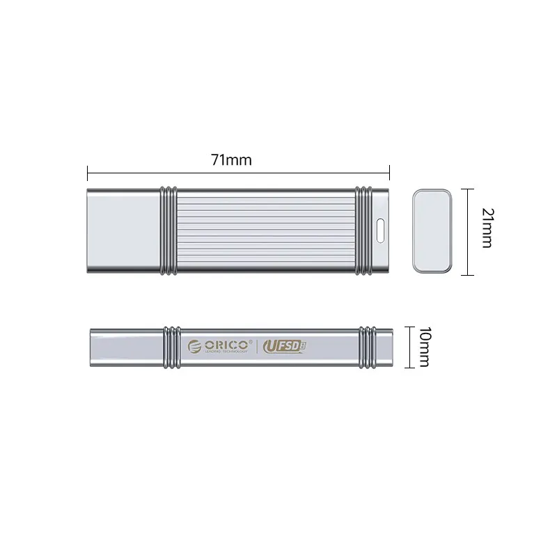 The ORICO UFSD USB3.2 Gen1 Flash Drive features a stylish yet tough metal casing that protects the drive from unexpected knocks.