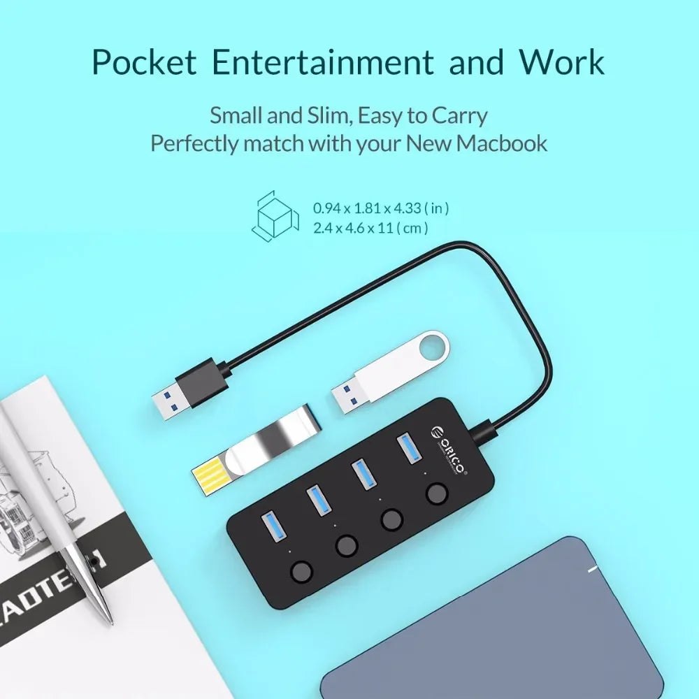 ORICO USB 3.0 Hub Splitter 4 Ports USB HUB With Individual Power Switches Multi USB Splitter OTG Adapter for Laptop Accessories