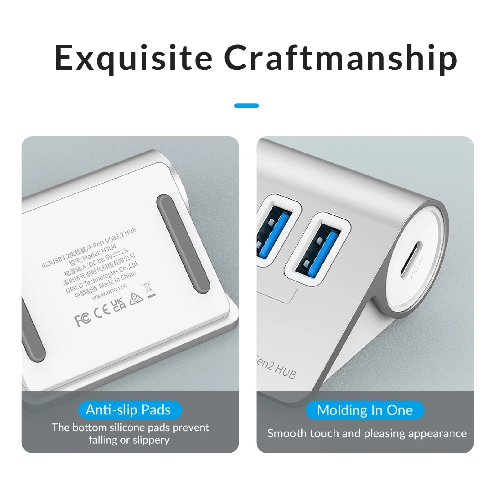 3. Aluminum Material Shell: ORICO USB 3.2 HUB shell with full metal and Apple design not only gives quick heat dissipation and scratch-proof which allow an extended life-span but also to match your device. Aluminum USB Hubs does not emit toxic substances, unlike plastic USB port expander, which may contain substances harmful to human