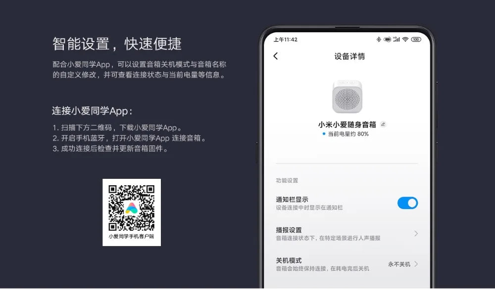 With the Xiaoai classmate App, you can set the speaker shutdown mode and speaker name