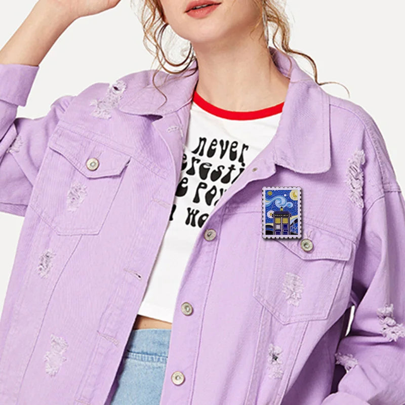 Police Box Van Gogh Starry Night Enamel Pin sun moon sky Brooch painting art film themed Accessory