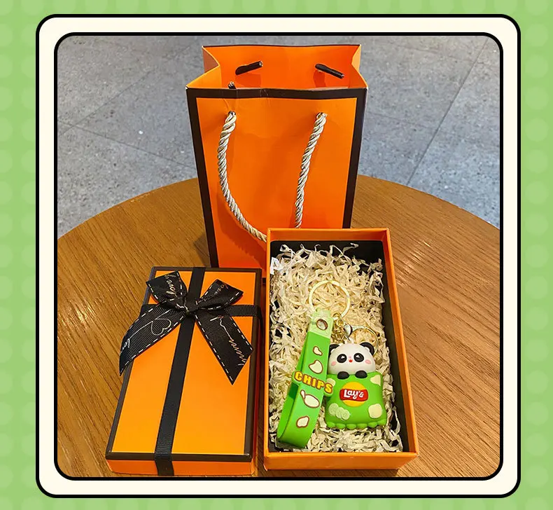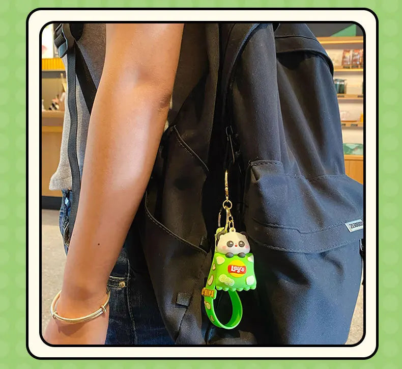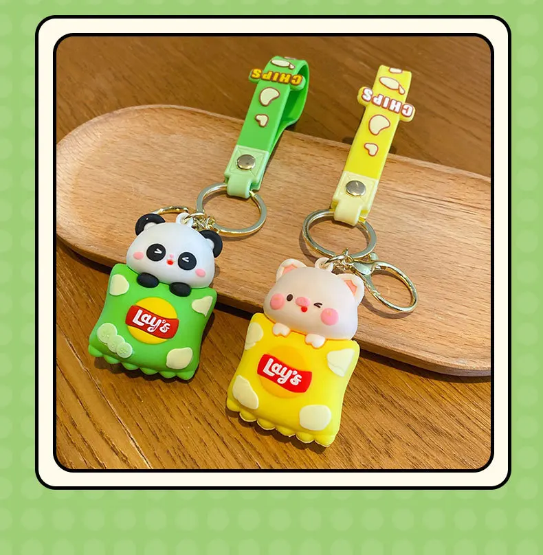 Potato Chips Snack Keychains Alloy & PVC Anime Cartoon Panda & Pig Unique Lobster Clasp Keyring Ideal for Bag Decoration & Gifts