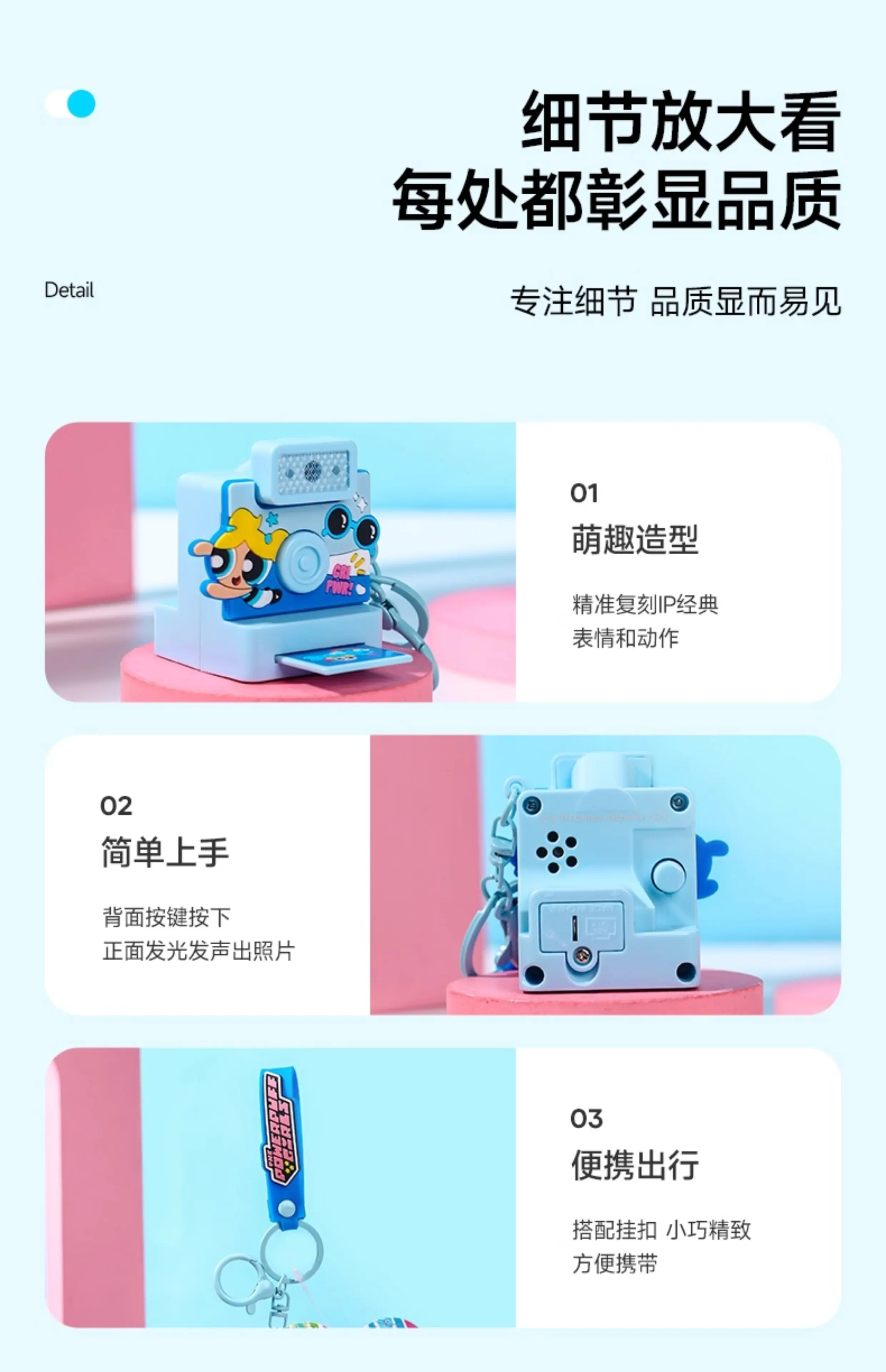 Powerpuff Girls Cartoon Anime Keychain Polaroid Flash Creative Fashion Toy Ideal Gift for School Opening Kids' Age