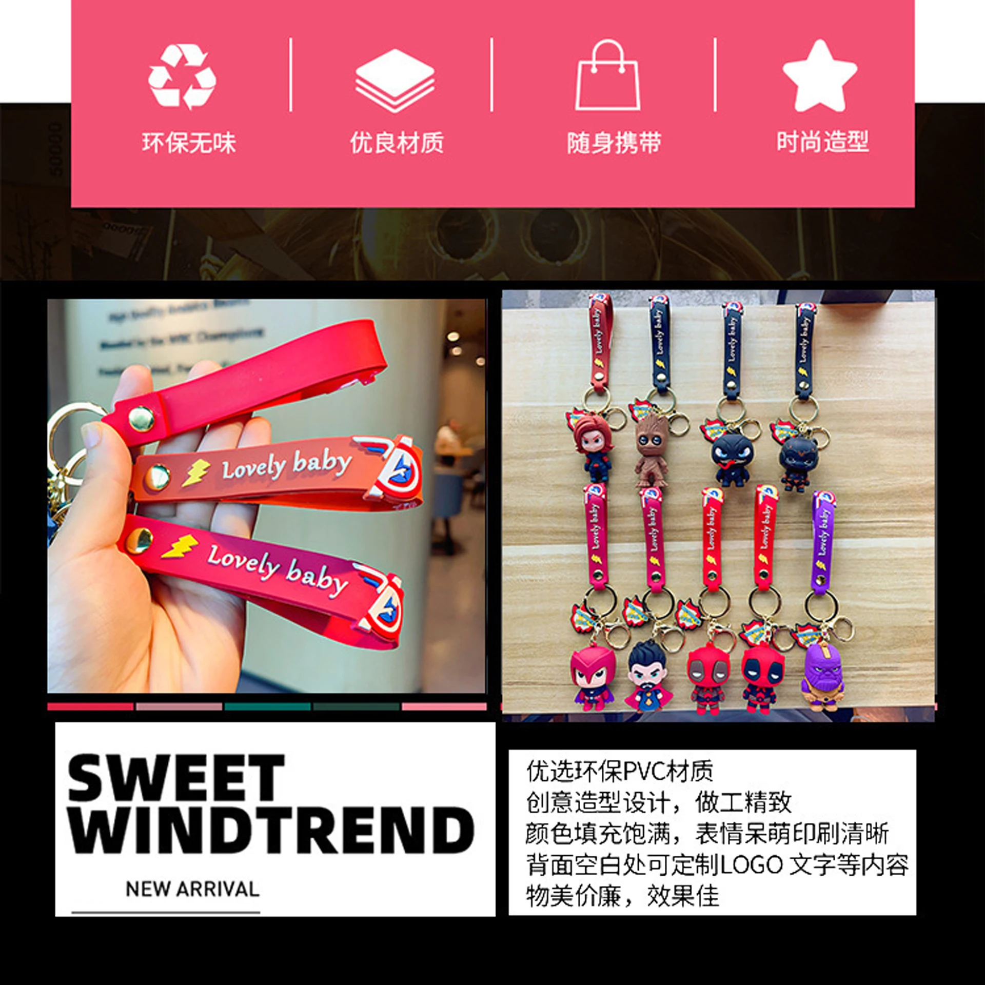 Q Version of The Marvel Series Keychain Cartoon Creative Spider-Man Doll Key Ring Schoolbag Car Key Chain Pendant Student Gifts