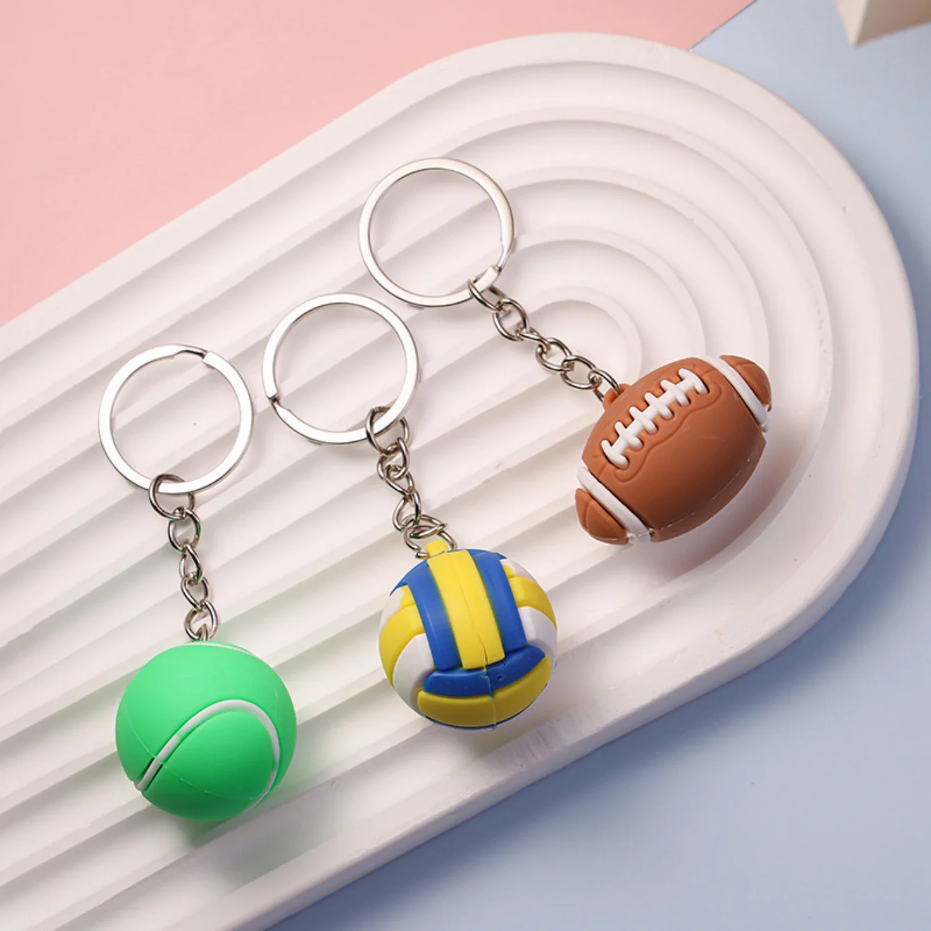 Simulation Football Basketball Volleyball Tennis Rugby Keychain PVC Creative Mini Key Ring Backpack Pendant Car Accessories Gift
