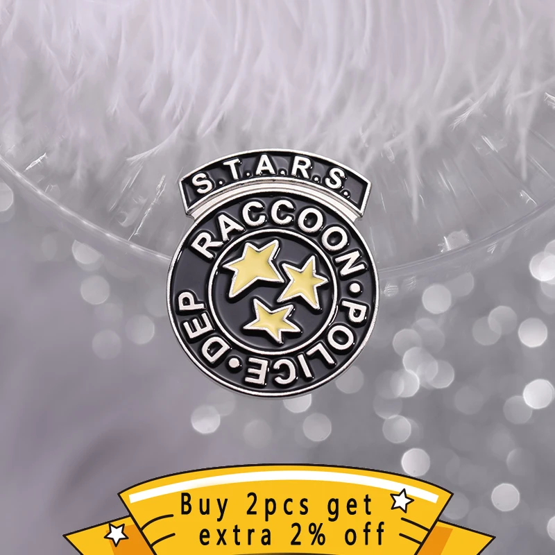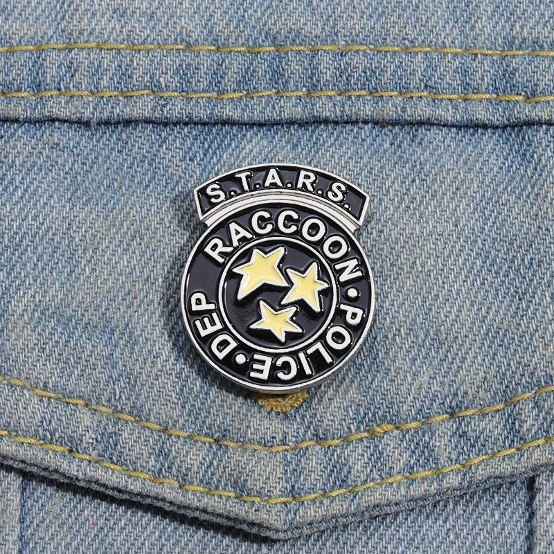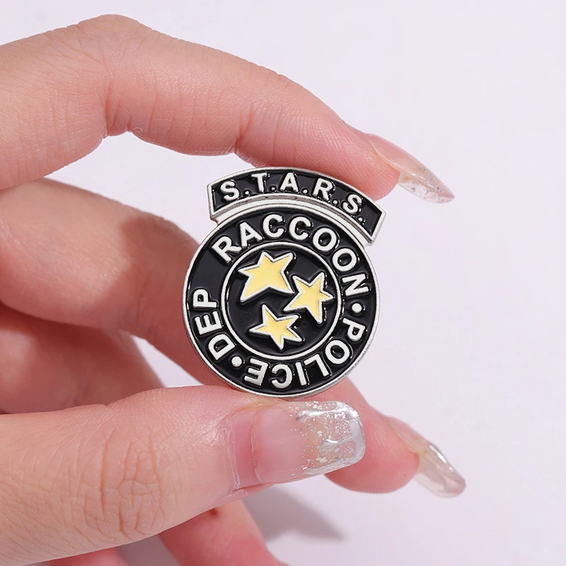Stars Rescue Raccoon Police Department Enamel Pins Terrifying Game Movies Brooches Lapel Badges Jewelry Gift For Fans Friends
