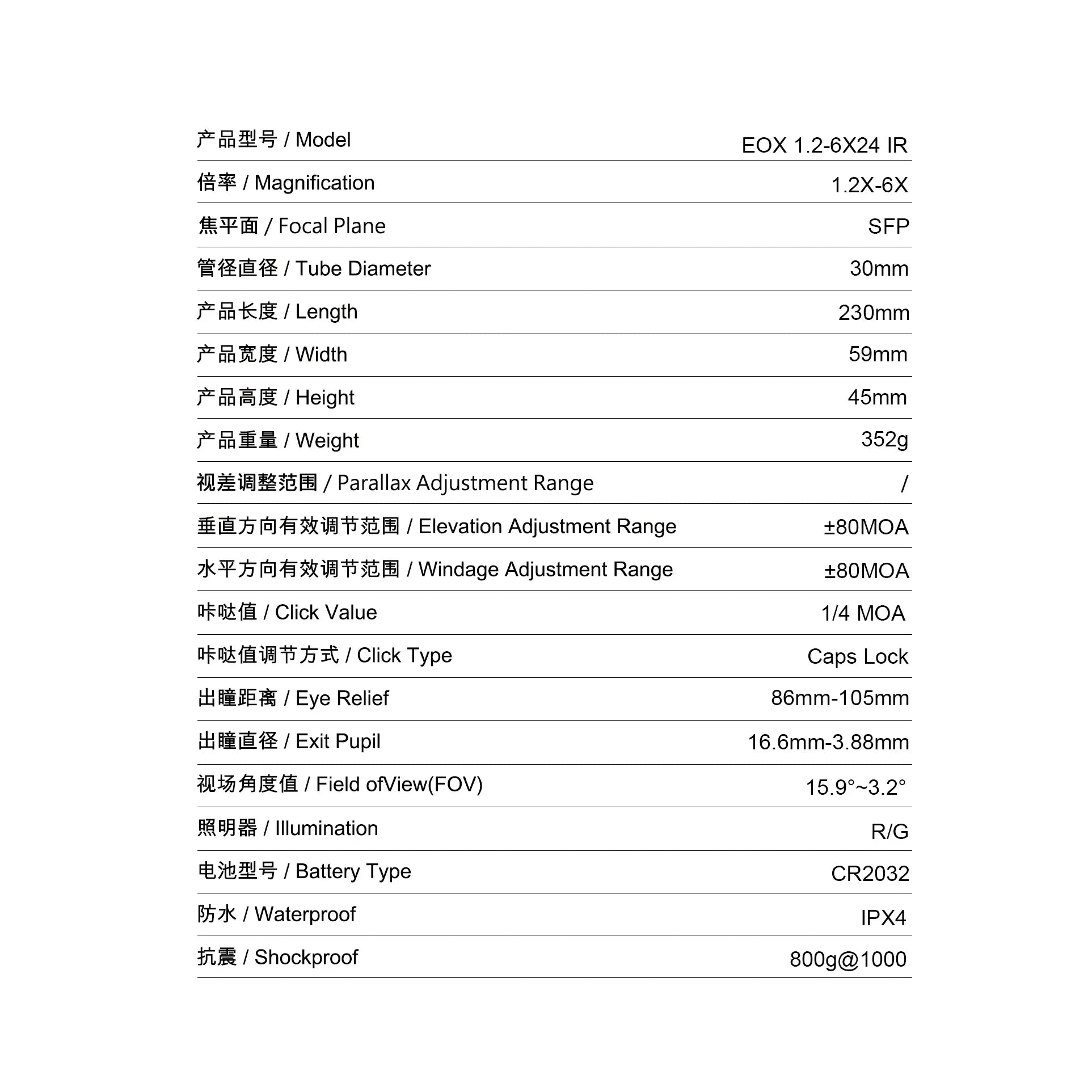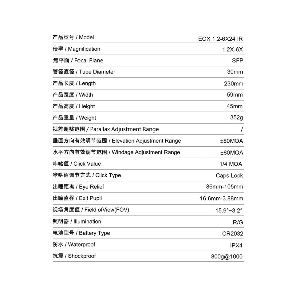 T-EAGLE EOX 1.2-6X24 IR Tactical Riflescope Hunting Spotting Rifle Scope Optical Collimator Air Gun Airsoft PCP Sight