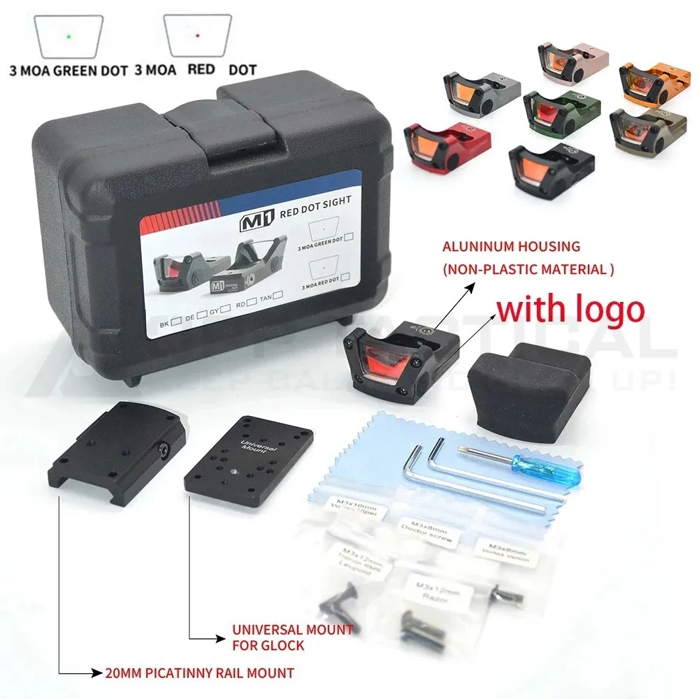 Tactial M1 Green/Red Dot Sight 3MOA with Full Original Markings Airsoft Optics with 20mm Rail and Universal Glock Mount Plate