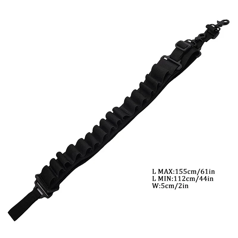 Tactical 15 Rounds Ammo Shell Belt Rifle 12 Gauge Ammo Pouch 2 Point Shotgun Sling Bullet Cartridges Holster Strap