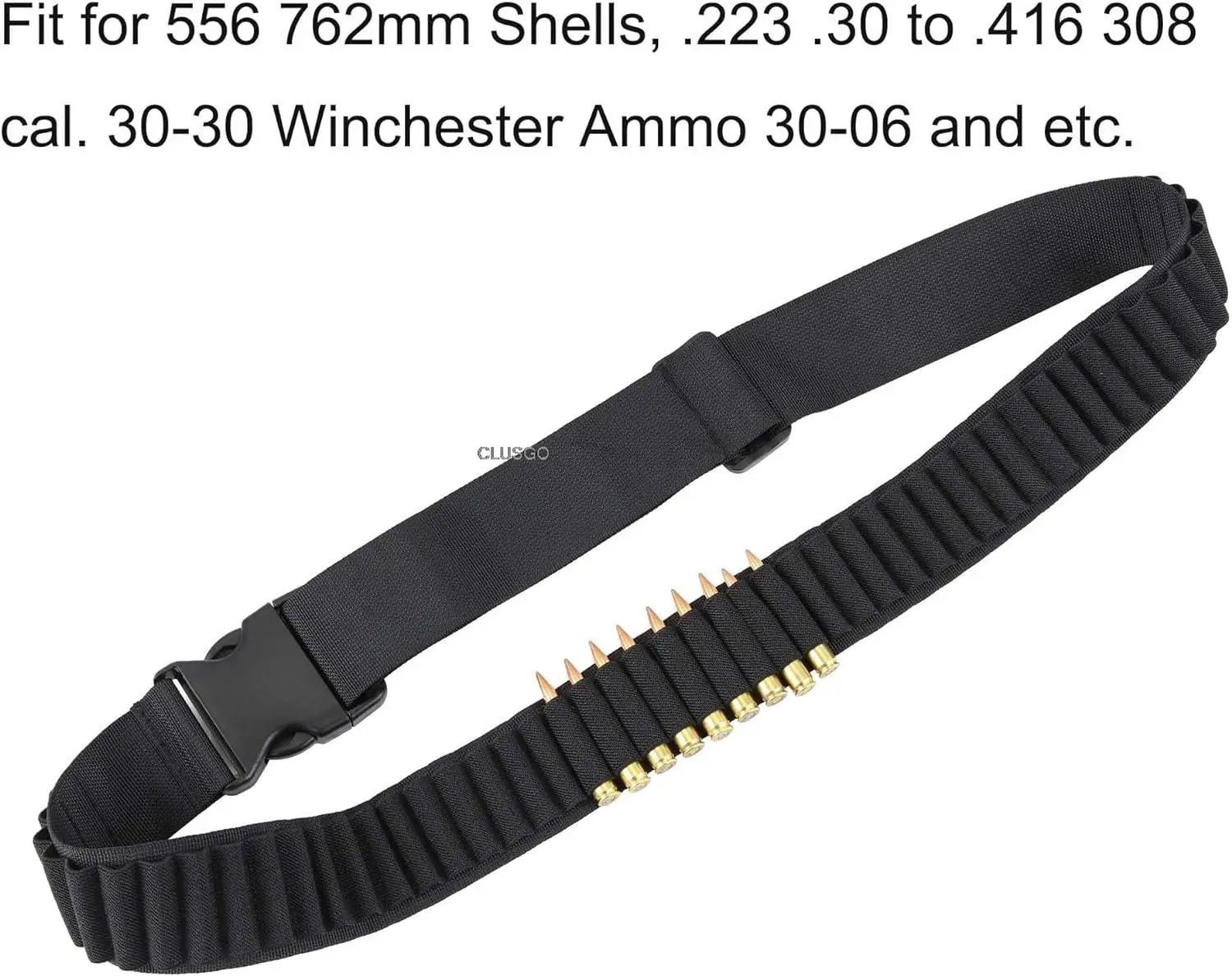 Tactical 50-Rounds Rifle Bullet Cartridge Bandolier Ammo Belt Sling with 2-Round Bullet Holder Patch for 308 Cal. 30-30 30-06