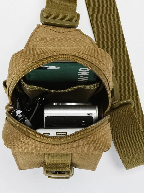 3.Large capacity.The bag has a main compartment and 1 front zipper pocket. You can put phone,bottle,keys,flashlight,handgun and other military accessories.