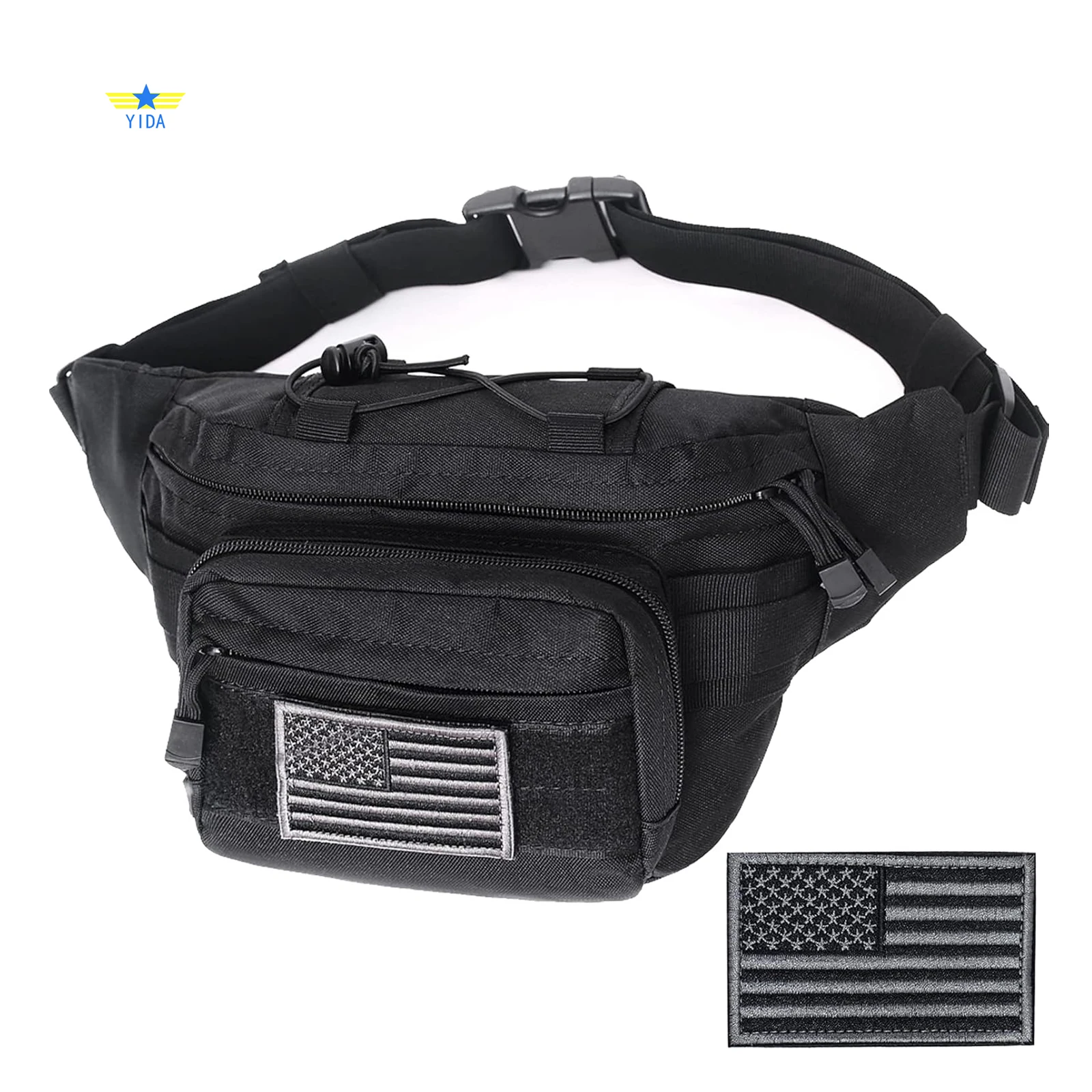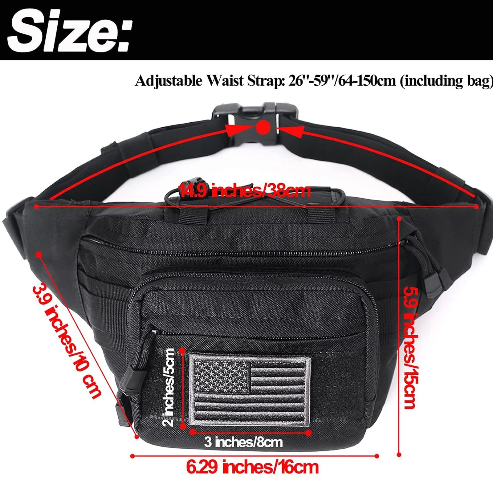 Tactical Fanny Pack, Waist Bag Hip Belt Bumbag Utility Bags for Outdoor Hiking Climbing Fishing with U.S Patch