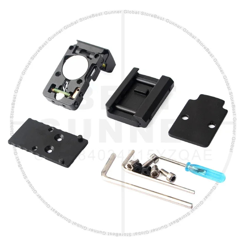 Includes an RMR base mount that mounts into the Glock® slide rear sight dovetail. Will fit most double stack magazine Glock® models. Replaces rear iron sights. -