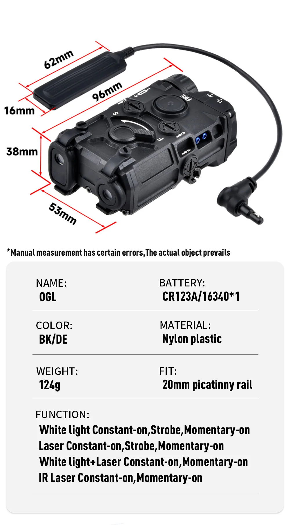 Tactical Nylon Eotec OGL Red Dot Blue Green IR Laser Indicator PEQ 15 OGL White Strobe Flashlight Airsoft Gun Rifle Accessory