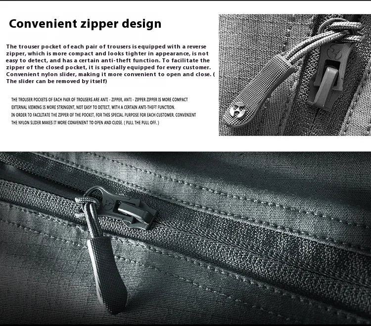 4. Flap metal zipper, waist with elastic, improve the comfort of wearing!