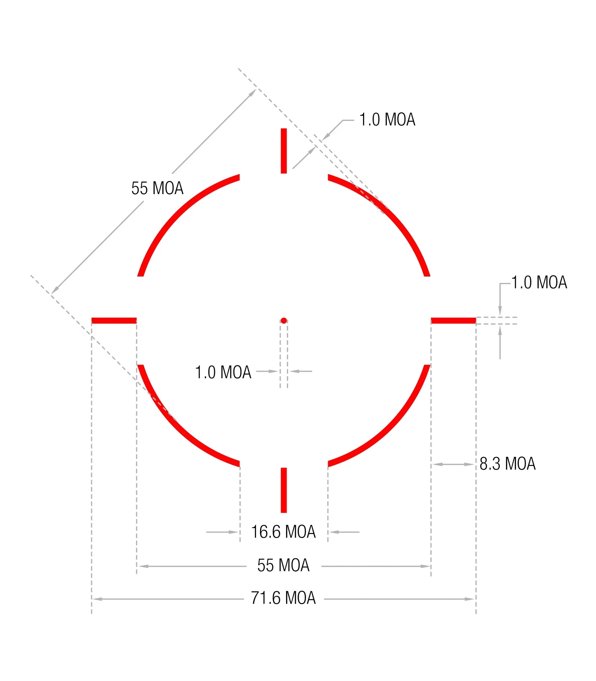 | Division: | Circle dot (red film)/circle dot (silver film) 32MOA, red and green cannot be switched |