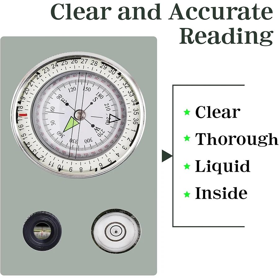 3. Night fluorescent compass dial and arrows. The compass dial and arrows will emit light after absorbing light, especially noticeable at night or in low light conditions.