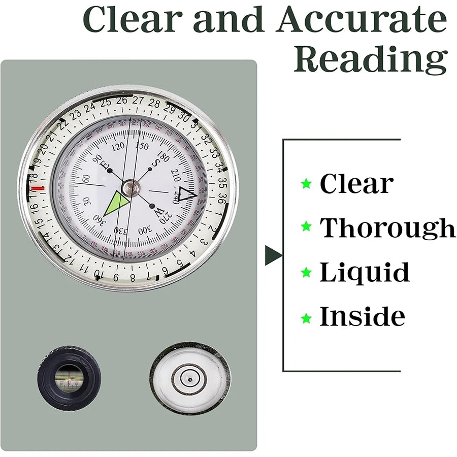 1. Durable military metal compass. The compass shell is made of high-strength zinc alloy material, which is very durable, impact resistant, and waterproof.