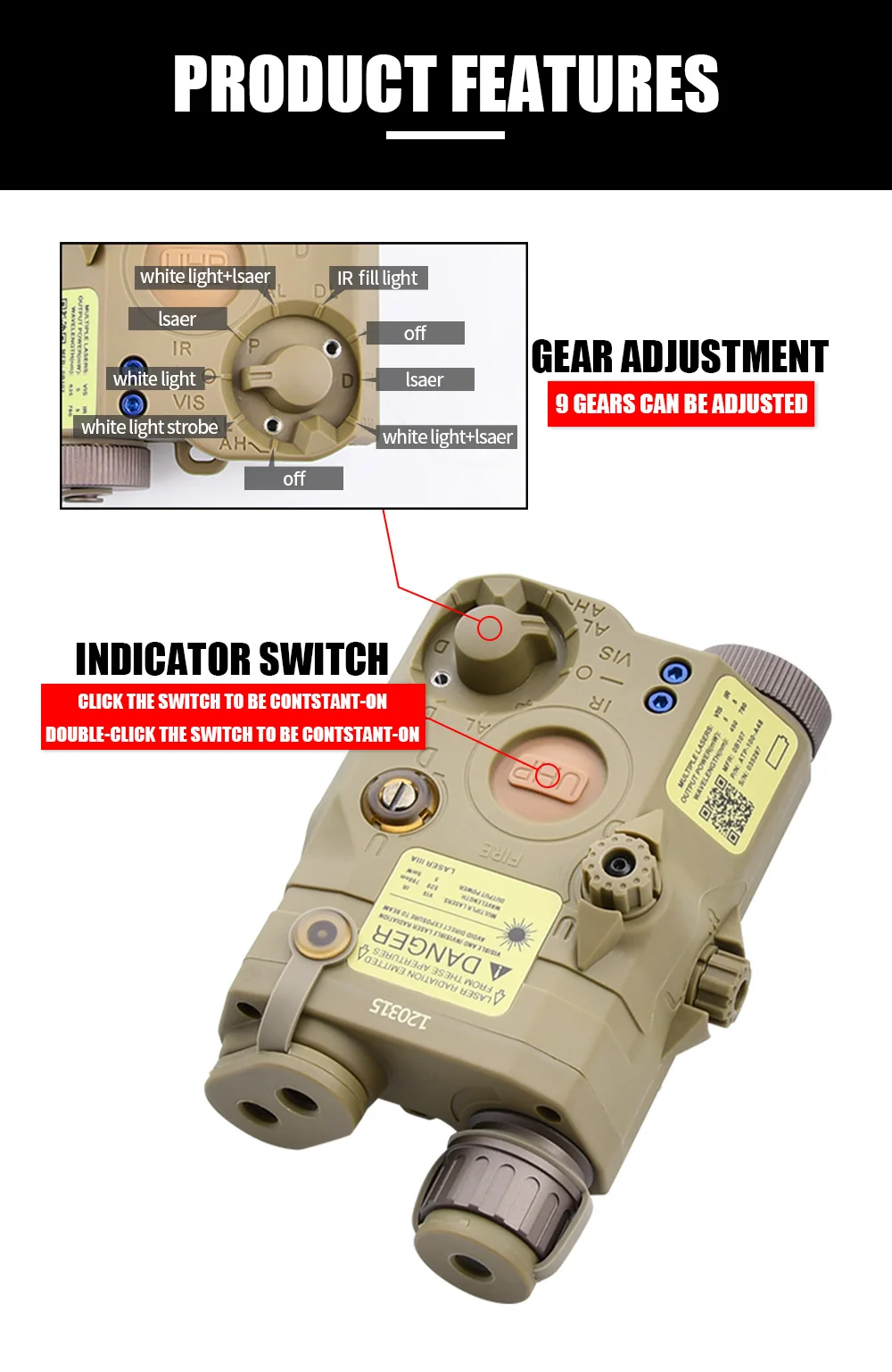 Tactical UHP AN PEQ 15 PEQ-15 LA5C Red Green Blue Dot Laser Indicator IR Fill Light Airsoft SF M600 Sureifr M600C LED Flashlight