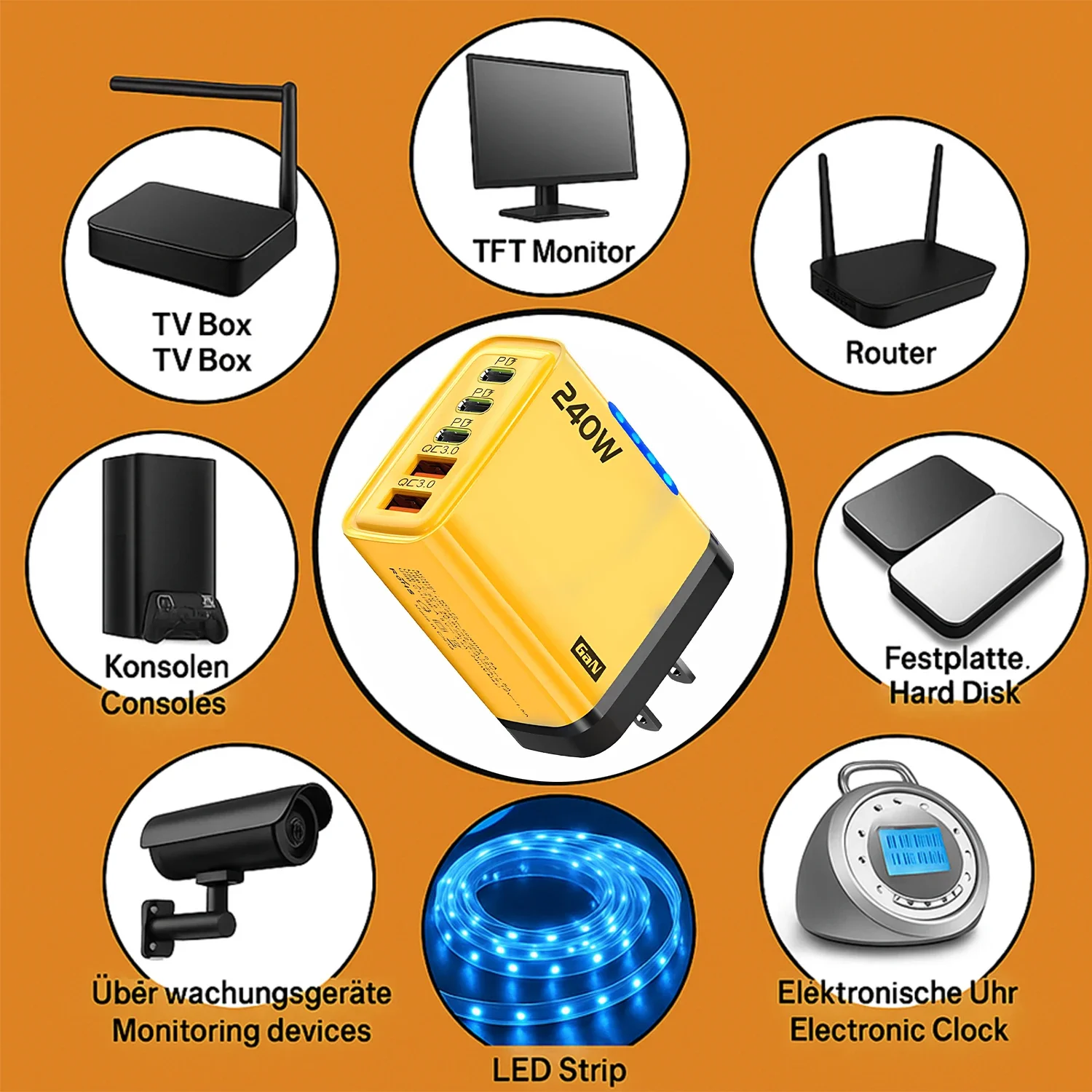 【 Powerful and Compact 】: Our 240W dual USB+3PD with LED charger is a powerful power supply in a small package designed to provide high-speed charging for your devices.