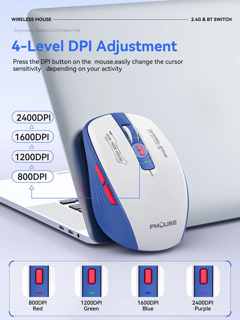 • DPI Adjust Button :Features an adjustable DPI button that allows you to customize the mouse's sensitivity according to your needs, offering a personalized user experience.