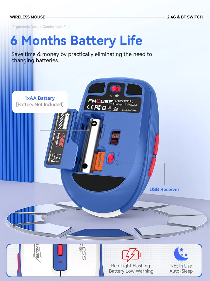 • Ergonomic Slim Profile :Designed with an ergonomic slim profile, this mouse provides comfortable grip and easy maneuverability, reducing hand fatigue during prolonged use.