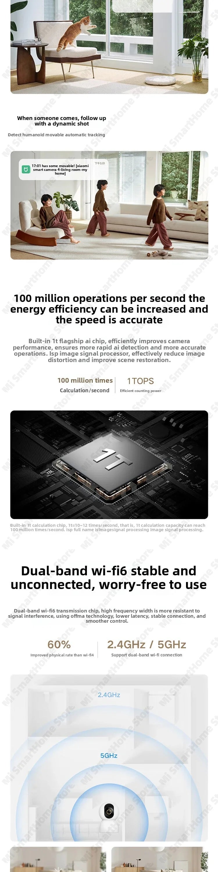 Xiaomi Smart Camera 4 Dual-band Wi-Fi 6 8MP 4K HDR AI Tracking Night Vision Two-Way Audio Home Security Baby Monitor Pet Camera