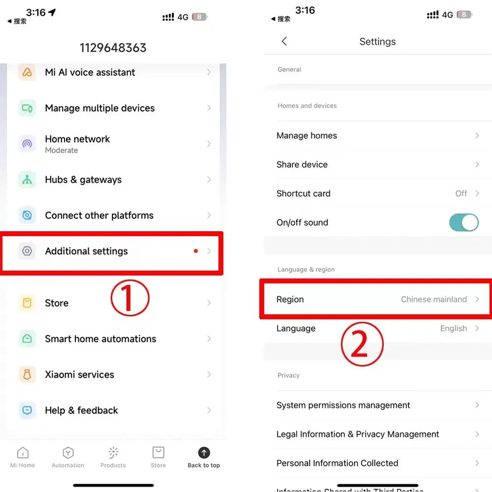 Note: This product is the Chinese version. When connecting to the Mi Home app, you need to switch the region to Mainland China.